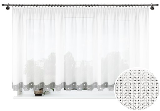 Taśma z cyrkoniami wszyta na całej długości dołu firany. Szerokość taśmy 6 cm. Na pozostałych aukcjach firany w różnych wymiarach.