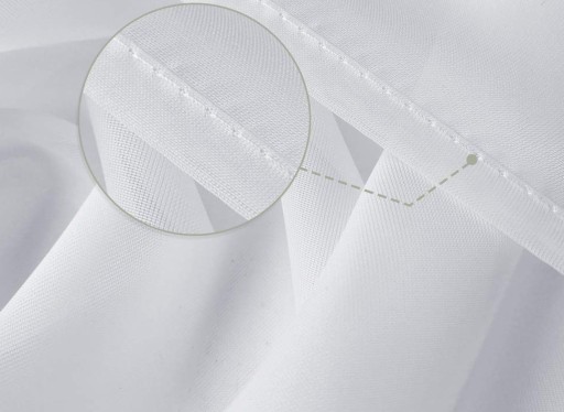 Boki firany wykończone 1 cm listwą przeszyte maszynowo.