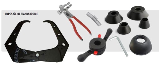 - Automatyczny pomiar odległości koła od wyważarki i średnicy obręczy przy pomocy wysuwanej miarki - pomiar szerokości przy pomocy cyrkla.