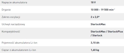- Oszczędność czasu: system szybkiej i beznarzędziowej wymiany akcesoriów dzięki uchwytowi narzędziowemu StarlockMax