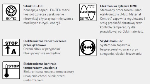 - Przycinanie, wycinanie oraz cięcia zanurzeniowe w drewnie, drewnie powlekanym, lakierowanym, materiałach kompozytowych, tworzywach wzmacnianych włóknem szklanym, płytach gipsowo-kartonowych, metalach nieżelaznych, tworzywach sztucznych