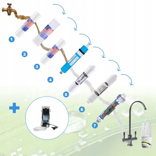 Woda przepływająca przez system poddana jest 7 stopniowej filtracji na którą składają się: