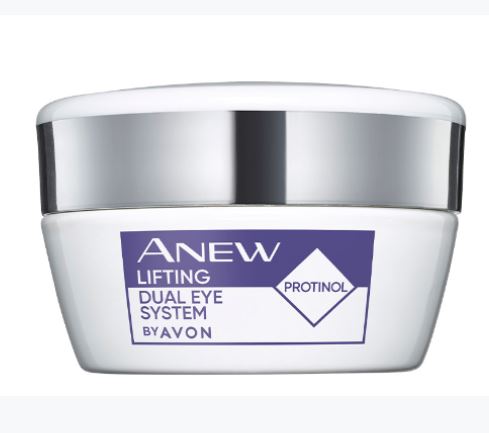 Sięgnij po nowy, ulepszony podwójny program liftingujący okolice oczu z Protinolem™ - opatentowanym przez Avon składnikiem, który zwiększa skuteczność i szybkość działania naszego bestsellerowego kosmetyku. Żel na powieki zapewni im efekt liftingu i widocznie je ujędrni, a krem zredukuje widoczność obrzęków pod oczami i pomoże wygładzić zmarszczki. Podwójny program liftingujący okolice oczu wyraźnie uniesie skórę i przywróci jej sprężystość, a efekty zobaczysz już po 2 dniach*!