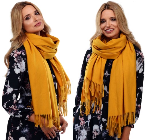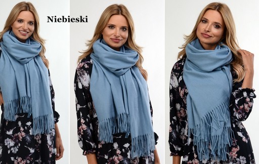 - Duży MODNY KASZMIROWY szal z FRĘDZLAMI o gładkim splocie.