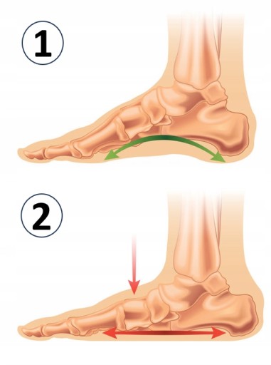 ✔️Objawy płaskostopia: bóle stóp i łydek nasilające się w miarę chodzenia, obrzęki stóp, odciski na podeszwach stóp;