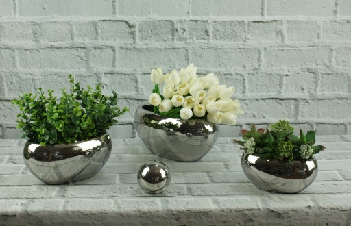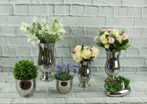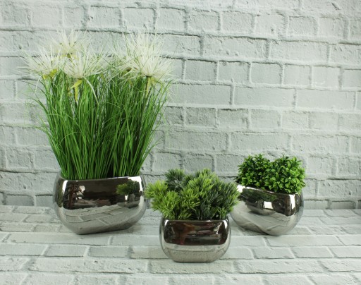 Doniczka – osłonka z ceramiki w kolorze srebrnym w stylu glamour.