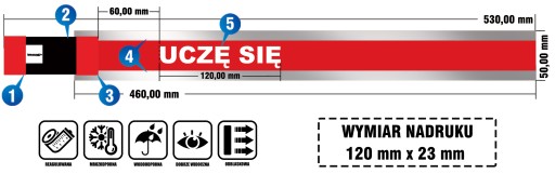 Opaska odblaskowa z gumką nadruk UCZĘ SIĘ czerwona