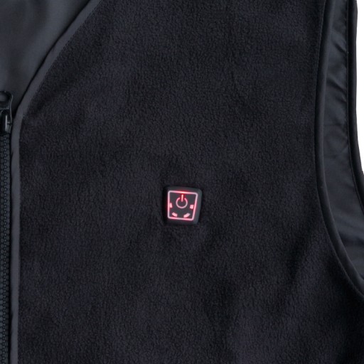 - Element grzewczy umieszczony jest z przodu i z tyłu kamizelki, co zapewnia równomierne rozprowadzanie ciepła