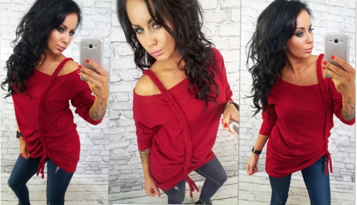 - Ozdobny warkocz wykonany ze sweterka tworzy ramiączko .Dół przodu podmarszczony