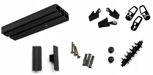 Karnisz sufitowy pojedynczy CZARNY PCV 180 cm szyna sufitowa komplet żabki