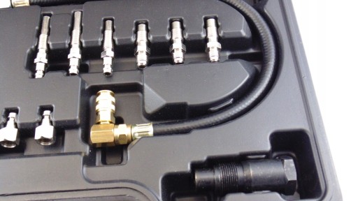 Profesjonalny zestaw pomiaru ciśnienia sprężania w cylindrach silników wysokoprężnych (diesel). Pomiaru można dokonać zarówno przez świece żarowe jak i przez wtryskiwacz.