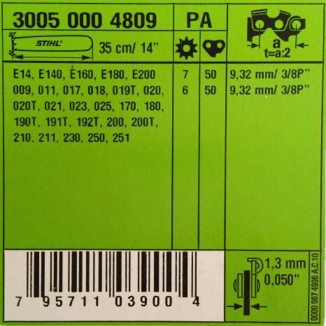 STIHL ПИЛЬНАЯ ЦЕПЬ 50 3/8 1,3 мм STIHL ПОЛНОЕ ДОЛОТО