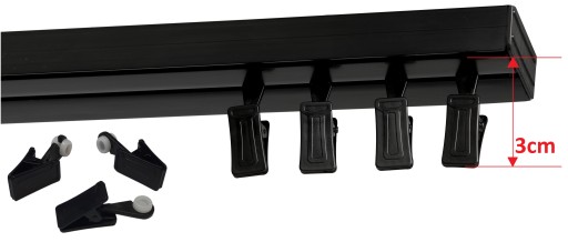 - Szyna 1 torowa w kolorze czarnym (Karnisze o długości do 250 cm dostarczamy w całości, a powyżej 250 cm w dwóch równych częściach)