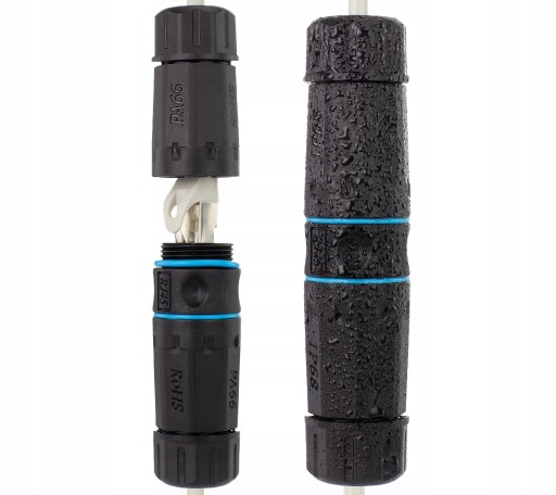 Solidne, skręcane złącze hermetyczne IP68 przeznaczone do łączenia dwóch ekranowanych przewodów sieciowych zakończonych męskimi wtyczkami RJ45 8p8c kategorii 6. Montaż odbywa się bez straty klasy transmisji.