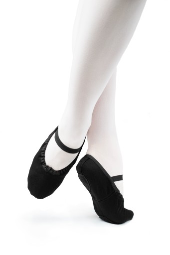 Płócienne baletki do tańca z dwudzielną podeszwą, idealnie nadające się na zajęcia z baletu, rytmiki oraz gimnastyki.