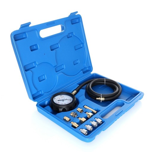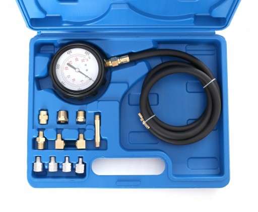 Zestaw do kontroli ciśnienia w układzie olejowym silników. Umożliwia wczesne odkrycie usterki pompy oleju lub zanieczyszczonych kanałków oleju. Może to oznaczać obniżenie kosztów remontu generalnego zatartego silnika. Komplet w poręcznej walizie,pasuje do większości silników. Można go stosować zarówno w silnikach benzynowych,diesla. Zestaw wielu adapterów pozwoli na dobranie odpowiedniej końcówki. Manometr posiada gumowa osłonę co chroni go przed uszkodzeniem po upadku. Tester posiada długi elastyczny wąż.