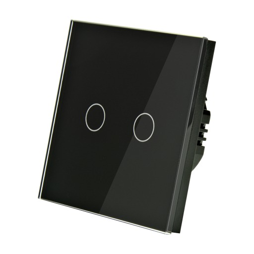 Włącznik światła dotykowy szklany podwójny z panelem szklanym w kolorze czarnym i podświetleniem LED