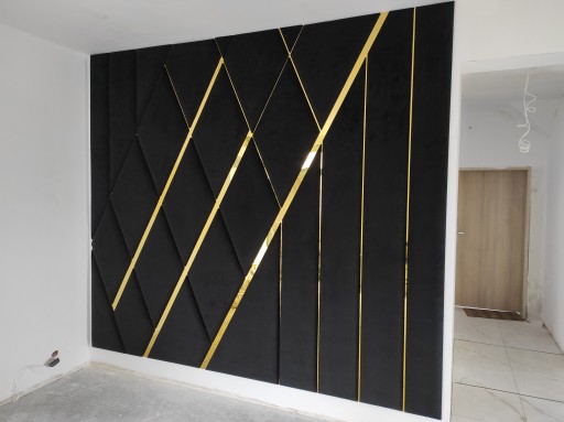 PANELE TAPICEROWANE niestandardowe z ozdobą, grubość około 3,5 cm.