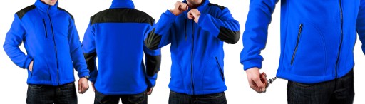 Aukcja dotyczy polaru męskiego z haftem mniejszym na jednej piersi oraz większego na plecach.