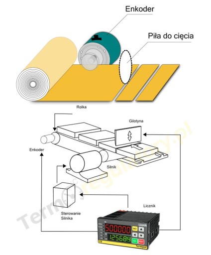 Enkoder to urządzenie które przekształca ruch w sygnał elektryczny. Sygnał ten może być odczytane przez urządzenie sterujące takie jak licznik impulsów lub sterownik PLC. Urządzenia sterujące mogą użyć tego sygnału do kontrolowania procesu którego zajście jest zależne od spełnienia warunku np. aktywacja głowicy drukującej i nadruk na elementach w odpowiedniej lokalizacji.