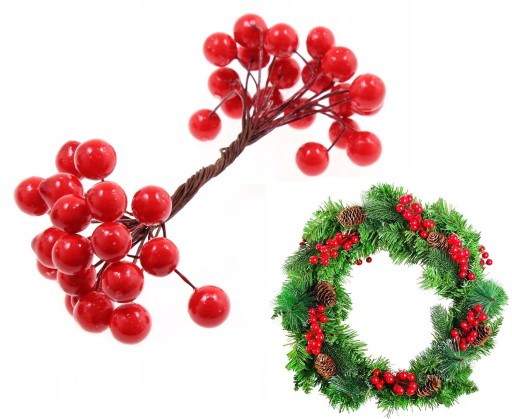 Jarzębiny wykonane ze styropianu, malowane na czerwony kolor, średnica 0,9-1,1cm.