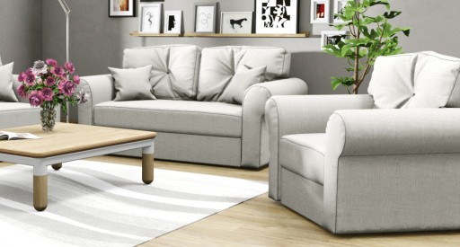 Wszystkie elementy zestawu wykonane zostały z wysokiej jakości materiałów tapicerskich. Wszystkie elementy w całości wyprodukowane zostały w Polsce! Zestaw jest niezwykle praktyczny i funkcjonalny. Trzyosobowa sofa posiada funkcję spania. Komplet cechuję uniwersalność, sprawdzi się zarówno w nowoczesnych, jak i w klasycznych wnętrzach.