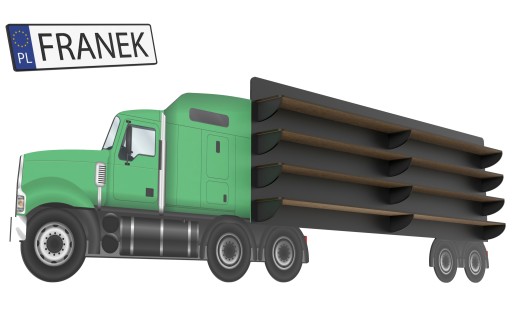 Półka została wykonana z płyty MDF o grubości 3mm. Niepowtarzalnego efektu obrobienia rantów nadał laser CO2, który używamy do obróbki tego typu płyt. Druk został naniesiony bezpośrednio na regał. Jest trwały, wyraźny oraz odporny na ścieranie. Dzięki temu połączeniu, pokój Twojego dziecka nabierze nowoczesnego, skandynawskiego stylu. Montaż regału okaże się banalnie prosty. Tablica rejestracyjna, ciężarówka oraz tylne koła naczepy montowane są za pomocą podklejonej już taśmy montażowej. Sama naczepa zawieszana jest za pomocą dwóch kołków rozporowych, które otrzymacie w komplecie. W zależności od wielkości resoraków nasza półka pomieści od 30 do 40 sztuk.