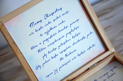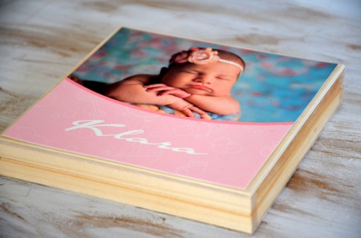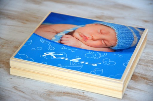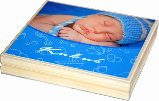 - Nadruk na górze pudełka: zdjęcie i imię dziecka
