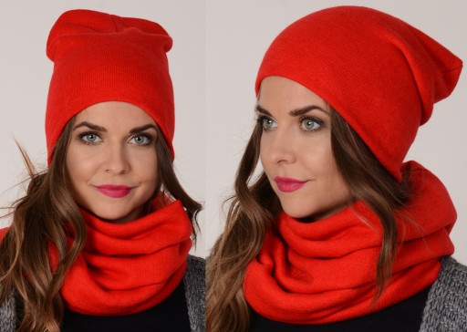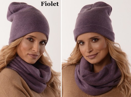 Komplet czapki z kominem POLSKIEJ produkcji, wykonany z przyjemnego puszystego i ciepłego materiału.