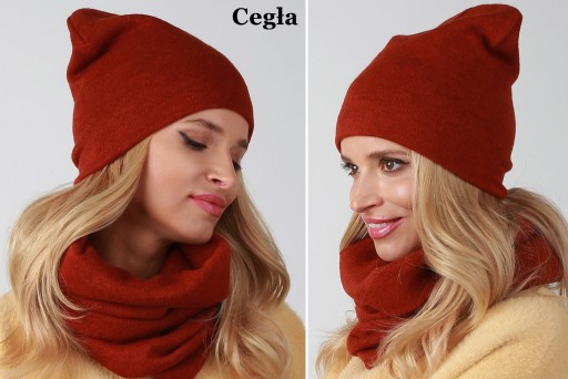 Czapka w rozmiarze uniwersalnym, dopasowuje się do głowy. Gęsto tkany materiał zapewni uczucie ciepła w chłodne dni. Komplet jest niezastąpioną częścią garderoby podczas jesiennej i zimowej aury, jego uniwersalność pozwala nosić go na wiele sposobów. Czapka jest delikatnie opadająca, ładnie się układa, można ją regulować zarówno wywijając na zewnątrz lub do wewnątrz w celu dopasowania dla siebie. Natomiast komin tubę można nosić klasycznie lub też jako kaptur, okrycie głowy.