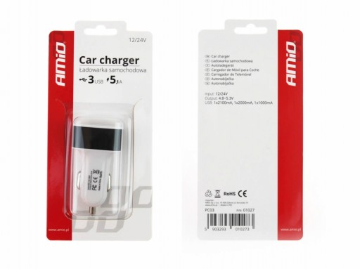 Ładowarka samochodowa 3xUSB 12V-24V AMIO