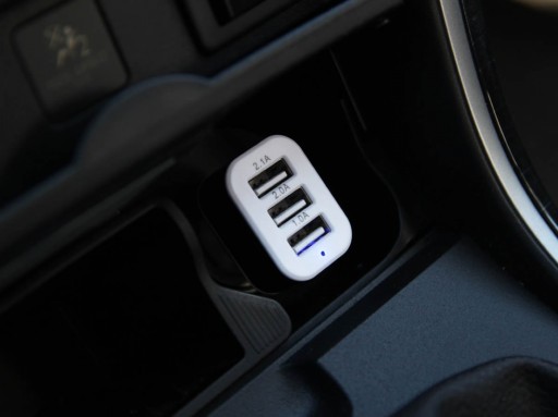 Adapter Samochodowy 3 x USB - 2100mA, 2000mA i 1000mA służący do zasilania urządzeń USB w samochodzie.