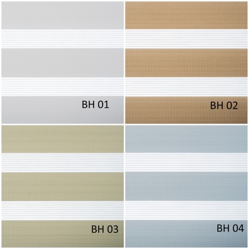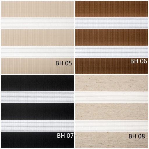 Tkaniny rolet, są wykonane w 100% z poliestru, wyjątkiem są materiały BH 08, BH 1401, BH1402, BH1405, BH1406, które mają dodatek lnu.