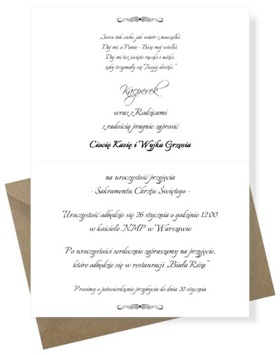 - Napis na kopercie lub lista gości w formie nieodmienionej (opcja dodatkowo płatna)