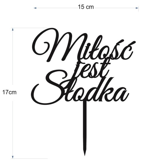 Wzbogać swój tort ślubny o niezwykle uroczy topper z napisem "Miłość jest słodka". Ten delikatny dodatek stworzony jest z dbałością o każdy detal, aby nadać Twojemu weselnemu deserowi wyjątkowego charakteru. Wykonany z lekkiego i trwałego materiału, ten topper idealnie nadaje się do wszelkich stylów tortów. Podkreśl swoje uczucia i udostępnij swoje przesłanie miłości wszystkim gościom, gdyż miłość naprawdę jest słodka. Niech ten topper stanie się centralnym punktem dekoracji na Twoim weselu i sprawi, że Twój tort ślubny będzie jeszcze bardziej niezapomniany.
