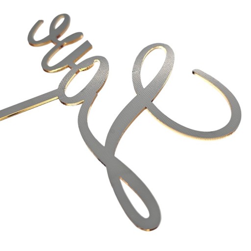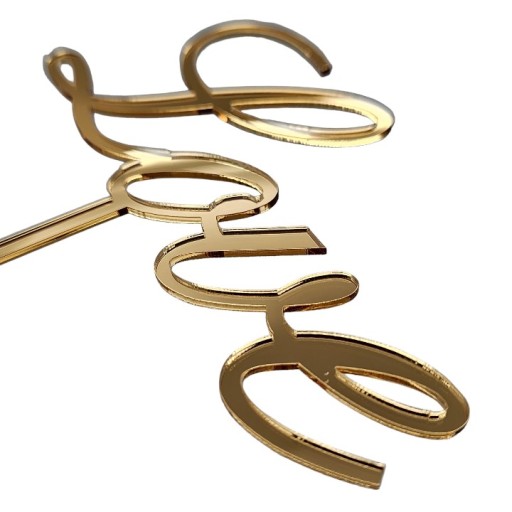 Topper na tort ślubny "LOVE" to niezwykle elegancki i romantyczny dodatek, który doda wyjątkowego uroku i charakteru Twojemu tortowi ślubnemu. Wykonany z najwyższej jakości materiałów, ten uroczy topper będzie wspaniałym akcentem dekoracyjnym na Twojej ceremonii ślubnej.