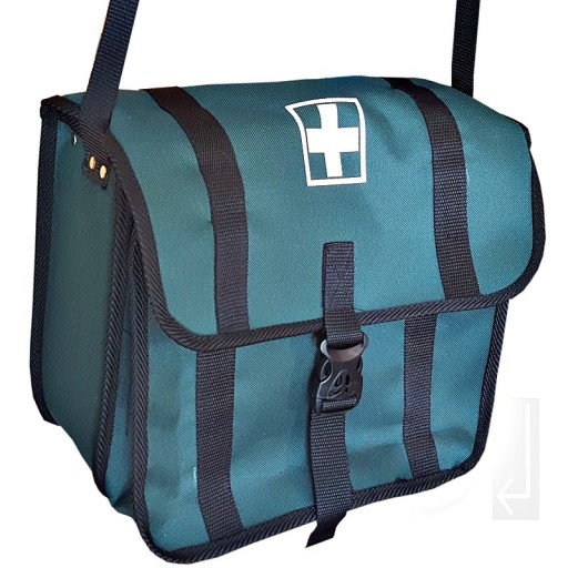 - Apteczka turystyczna W1 w torbie z kodury zawiera podstawowe wyposażenie służące do udzielania pierwszej pomocy.