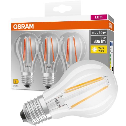 Zestaw Żarówka FILAMENT LED E27 7W = 60W 806lm OSRAM 360° 3PAK 2700K