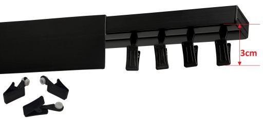 - Szyna 1 torowa w kolorze czarnym (Karnisze o długości do 250 cm dostarczamy w całości, a powyżej 250 cm w dwóch równych częściach)