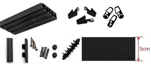 - Maskownica w kolorze czarnym o szerokości 5 cm i długości równej całkowitej długości karnisza
