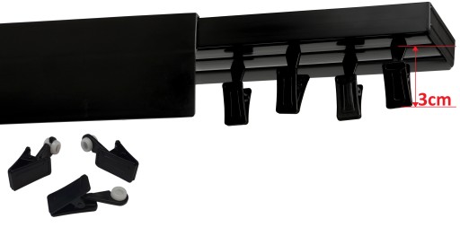- Szyna 2 torowa w kolorze czarnym (Karnisze o długości do 250 cm dostarczamy w całości, a powyżej 250 cm w dwóch równych częściach)