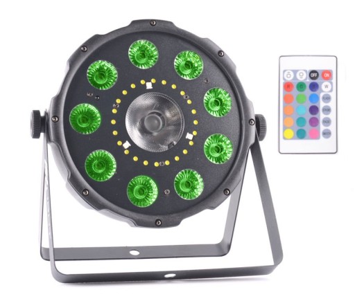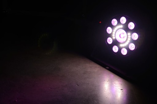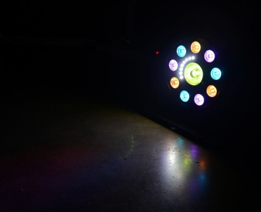 Zaczynając od 9 diod LED RGBW na zewnątrz, również efekt stroboskopowy z 24 białymi diodami LED SMD, a następnie pośrodku 15-watową diodą RGBW COB. W cenę wliczony jest również pilot do zmiany funkcji urządzenia. Jak zwykle, masz kontrolę DMX, jeśli używasz kontrolera lub możesz użyć tego urządzenia w trybach dźwięku do światła, auto pokazu lub master slave. Gniazda Iec In i Out znajdują się z tyłu, aby połączyć ze sobą wiele jednostek.