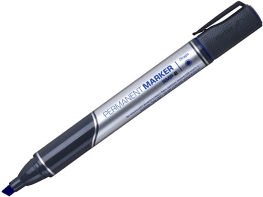 Marker wyposażony w ściętą fibrową końcówkę piszącą. Doskonały do pisania po prawie każdej powierzchni: papierze, szkle, metalu i plastiku. Szybkoschnący, nietoksyczny tusz, nie rozmazuje się, nie blaknie pod wpływem promieni słonecznych. Tusz spełnia normę ISO 12757-2. Marker może być pozostawiony bez zatyczki przez dwa tygodnie (nie krócej niż produkty z systemem „dry safe ink” i „cap off”) - nie zaschnie w warunkach normy ISO 554. Korek w nasadce i obudowie określa kolor tuszu.