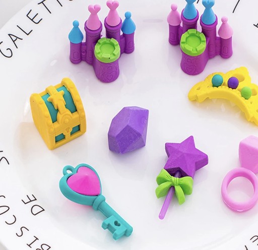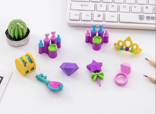 - gumki do ścierania / zmazywania w kształcie akcesoriów księżniczki