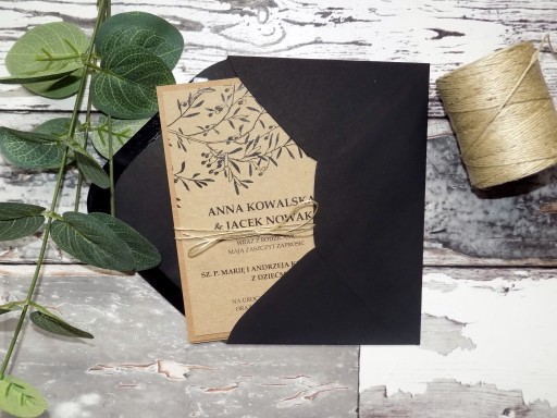 - sznurek jutowy samodzielnego zawiązania na zaproszeniu