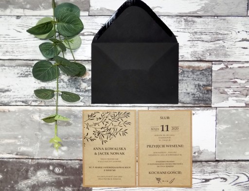Oferuję Państwu piękne i eleganckie zaproszenia/zawiadomienia ślubne w formacie C6. Zaproszenia dwukartkowe, utrzymane w stylistyce rustykalnej, minimalistyczne.