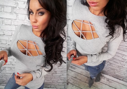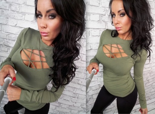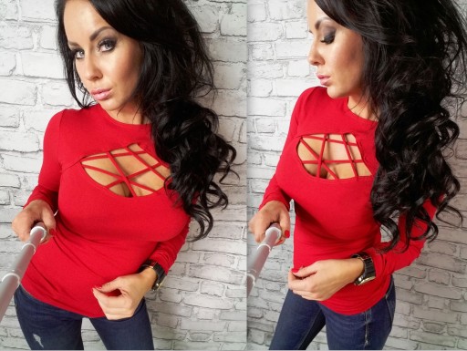 - Oryginalny fason bluzki oraz rewelacyjny dekolt zdobiony paseczkami idealnie podkreślają kobiece kształty .