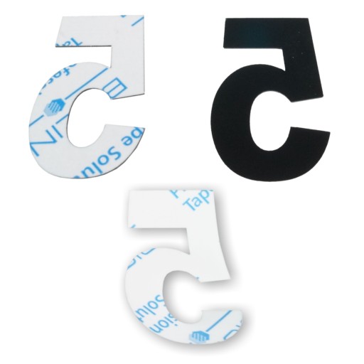 - Każdy znak wyposażony jest w klej samoprzylepny oraz folię ochronną (do zdjęcia po zakończeniu montażu).