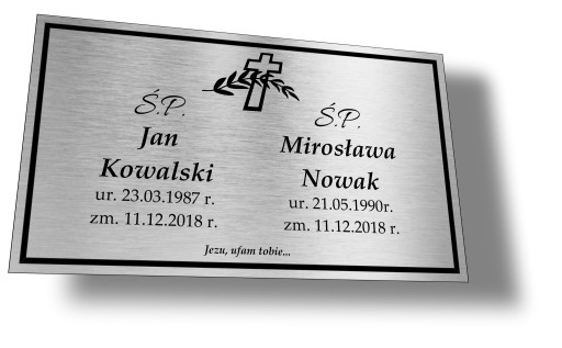 - Tekst, który ma się znaleźć na tabliczce (możliwa modyfikacja wzoru)