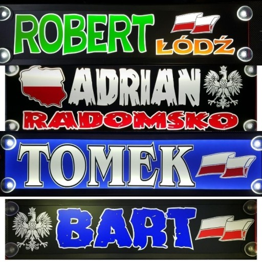 Podświetlane diodami led, tablice imienne dla kierowców.